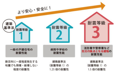 3つの段階に分かれており数字が大きいほど耐震性が優れていることを表します。