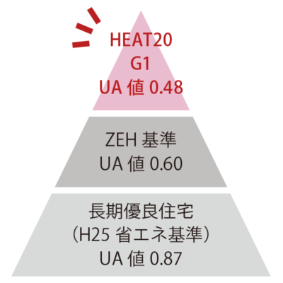 長期優良住宅やZEH基準を超える「HEAT20・G1」レベルを実現しています。